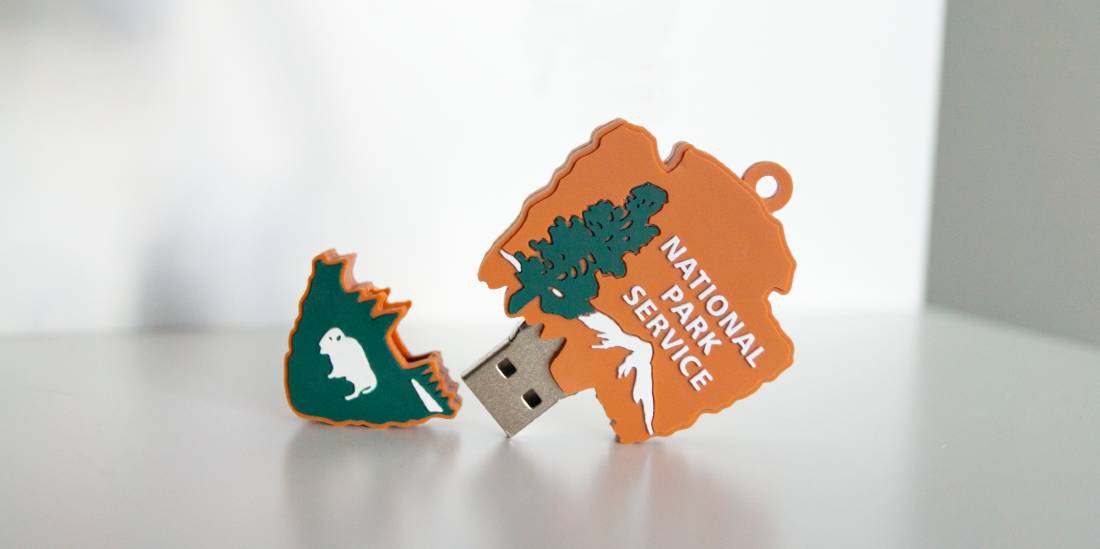 Luckily, we had our work cut out for us seeing that the NPS already had such a great logo. The rugged shape of these drives is enhanced by the jagged lines separating the cap from the body of the USBs. To really set things off, our design team opted to have some elements of their design raised and outline others with indentation. This created an awesome three-dimensional effect that brought their custom shaped flash drives to life.